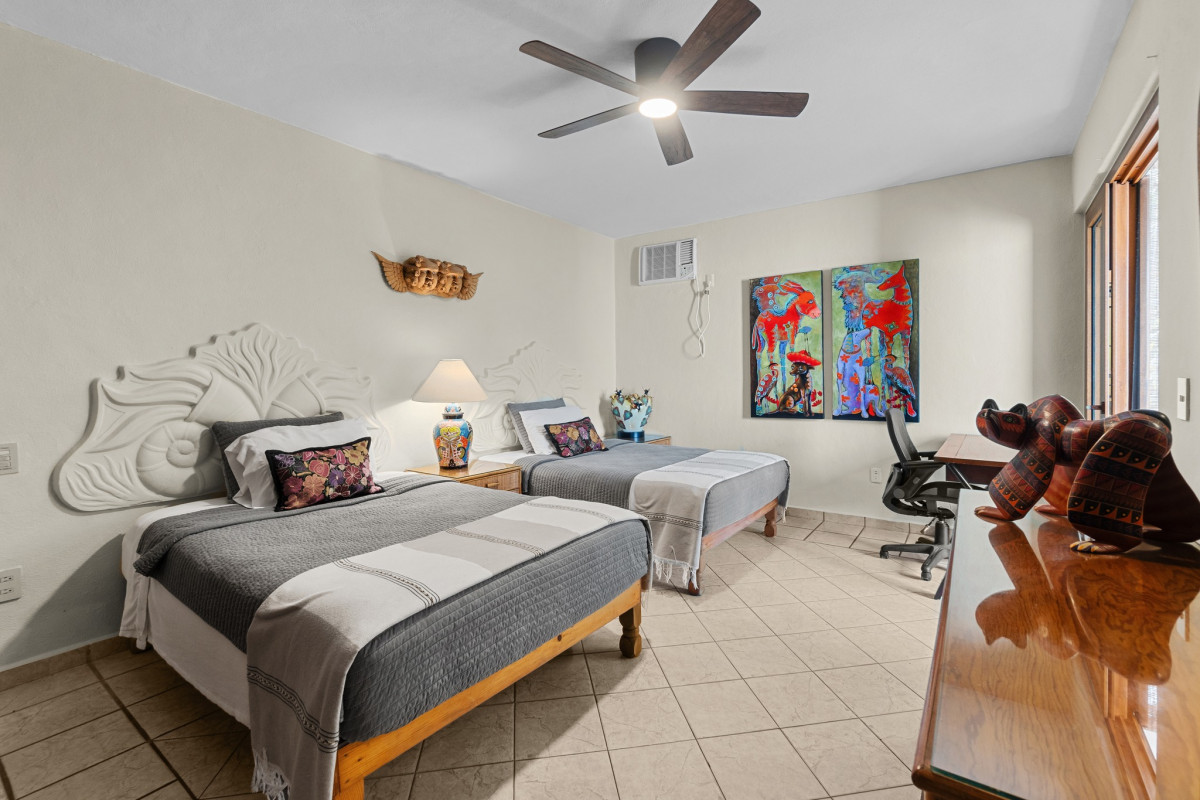 🌴 Palmera Vacations presents: Casa JaimeTucked away on a peaceful cul-de-sac 🛣️, Casa Jaime offers the perfect blend of tranquility and convenience in the heart of Puerto Vallarta. This charming 2-bedroom 🛏️, 2-bathroom 🛁 condo is beautifully decorated with vibrant artwork and traditional Mexican folk art 🎨, adding warmth, color, and character to every corner of the home.