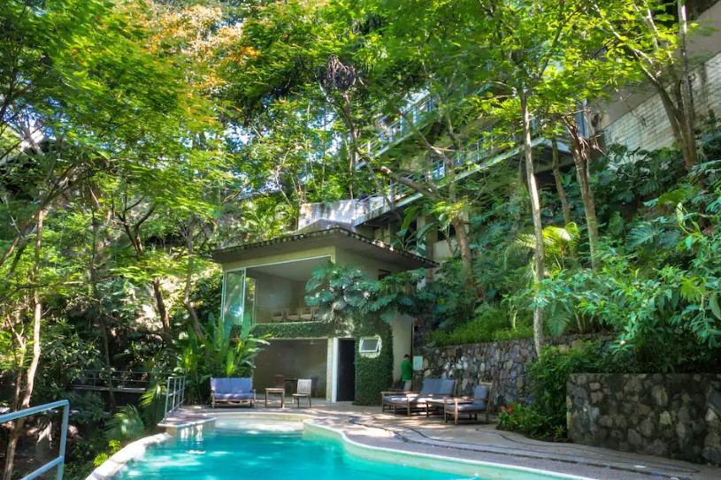Enjoy your private infinity pool and the heated spa-style pool within the community. Just 5 to 10 minutes away, you'll find Puerto Vallarta's best beaches—Playa Amapas, Conchas Chinas, Playa de los Muertos—as well as the Malecón, the Romantic Zone, restaurants, galleries, and vibrant nightlife. The property features four bedrooms, including a separate attic with a sunroom, lounge chairs, tables, shower, full bathroom, jacuzzi tub, and a walk-in closet for two.