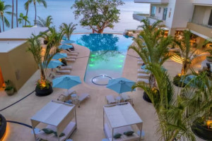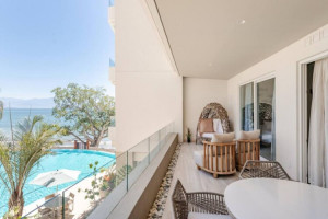 Your wide private balcony is the perfect place to sip your morning coffee or toast to the sunset, with peaceful views of the beach, the pool, and the vibrant sky beyond.