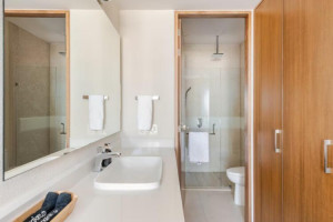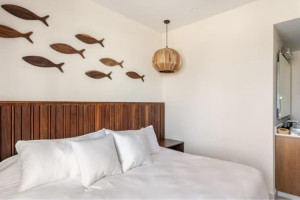 Sleep to the soothing rhythm of the waves in a plush king-sized bed dressed in high-quality linens. The en-suite bathroom includes a stylish shower, modern finishes, and starter toiletries for your convenience.