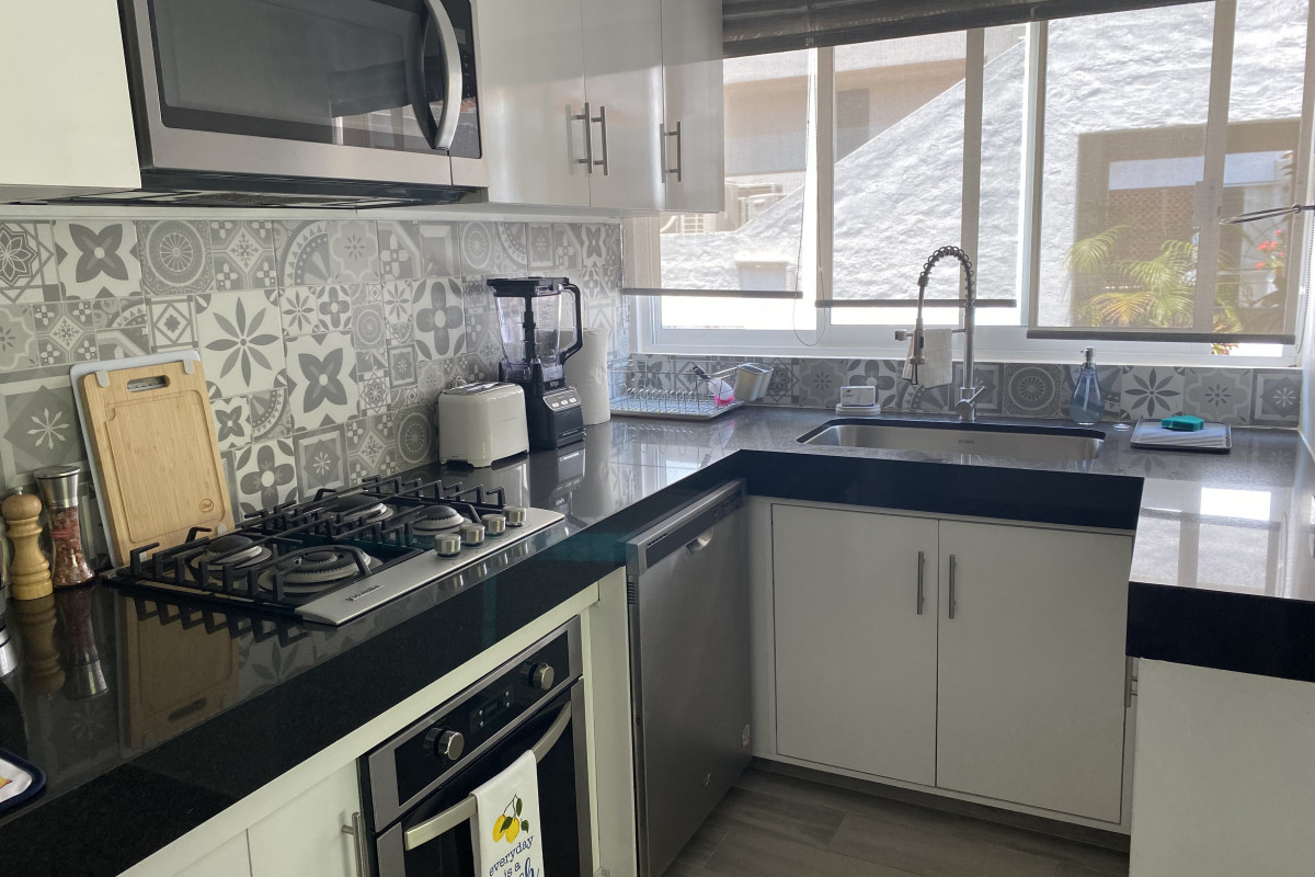Palmera Vacations is proud to present this exceptional top-floor corner unit nestled within the beloved Loma del Mar complex, perfectly located in the heart of Puerto Vallarta’s vibrant Zona Romántica. Just steps away from the beach, the iconic Malecón, renowned art galleries, a colorful variety of restaurants, local shops, cultural landmarks and lively nightlife, this property places you at the center of it all, while offering a peaceful retreat from the excitement.Surrounded by lush tropical gardens and located on a quiet cul-de-sac, this tranquil and fully remodeled residence is a rare find. It features two spacious bedrooms and two full bathrooms, with elegant finishes throughout including granite countertops, marble details, custom cabinetry, and tropical hardwood accents. The open-concept layout flows seamlessly from the fully equipped kitchen—with stainless steel appliances and dishwasher—into the bright and airy living and dining spaces. There’s even a custom bar area complete with a wine fridge for your enjoyment.