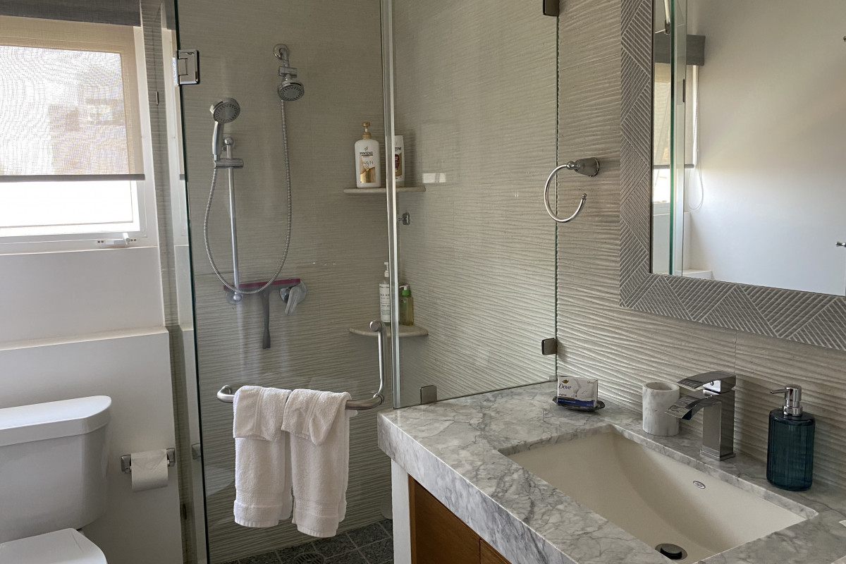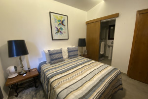 The main bedroom boasts a king-size bed, generous closet space, solar shades and blackout curtains for added privacy and comfort. The second bedroom now features a comfortable queen-size bed and an en-suite bathroom, offering the perfect combination of privacy and convenience for additional guests.
