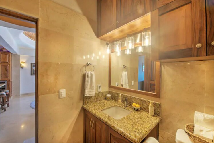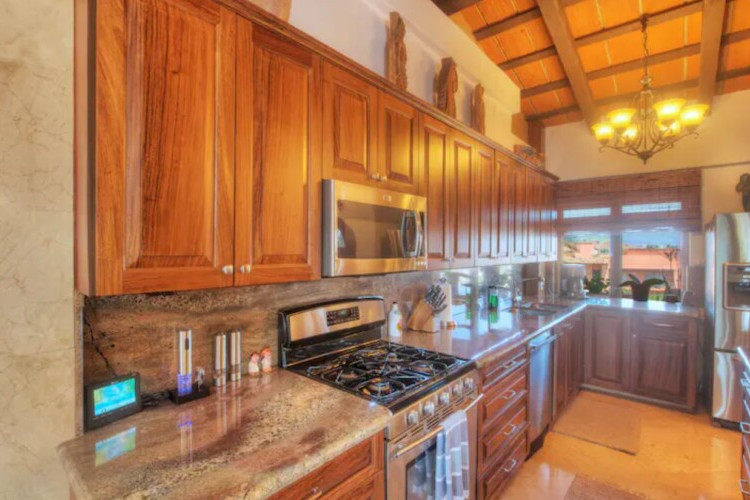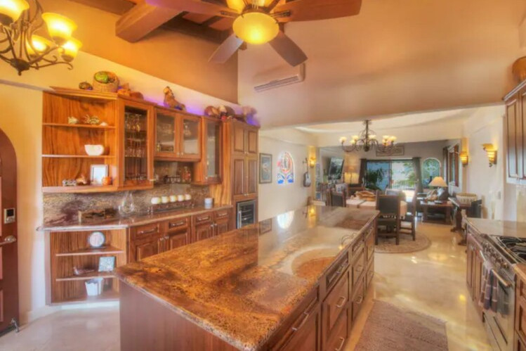 • Traditional Mexican décor with custom Parota wood cabinetry
