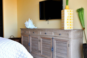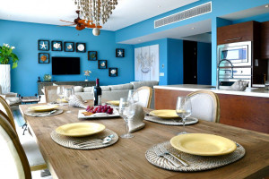 This stunning unit stands out thanks to its bold and colorful interior, inspired nautical décor, custom furnishings, and whimsical touches—from unique sea-themed art to playful seahorse accents. Every detail was carefully chosen to make your stay unforgettable.