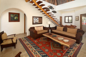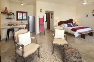 The lower levels offer five one-bedroom casitas, each with a king-size bed, private bath, and kitchenette.