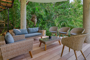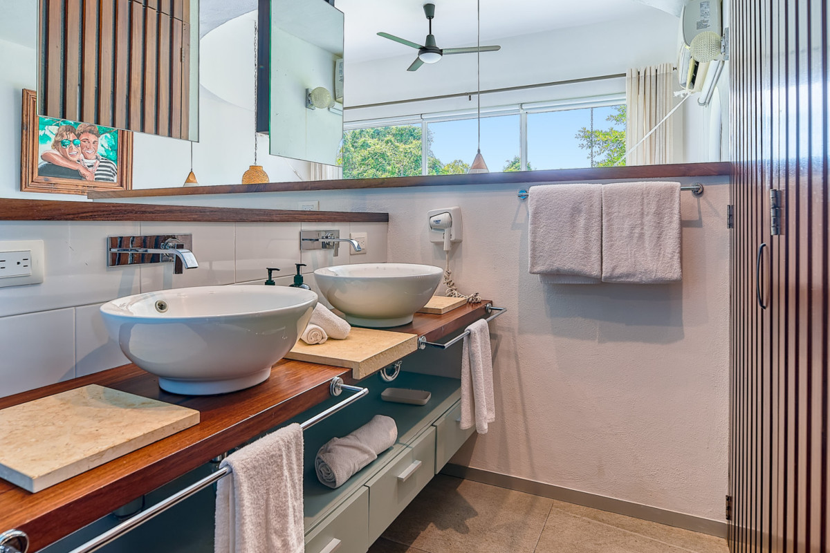 Ocean-view home with a private infinity pool, partial AC & gym & beach accessThis spectacular home is going to be the centerpiece of your next vacation! Inside, you'll find a bright, expansive living area filled with natural light and positive energy. Climb the outside stairs to the second level, where you'll see a bedroom with an en suite bathroom. You'll also find a main bedroom with a jetted tub in the en suite bathroom. The fitness center has plenty of weights, a heavy bag, and a treadmill. You'll love challenging a friend to a game of pool or darts before settling into the comfy hammock out by the infinity pool, which can be optionally heated for an additional fee. Spend your afternoons swimming in the pool, lounging on the spacious back deck, or playing around in the full kitchen - it's loaded with all the stainless steel appliances, utensils, gadgets, and counter space you'll need. Enjoy your masterpiece over the dining table or, better yet, outside on the patio for an alfresco meal you won't forget.