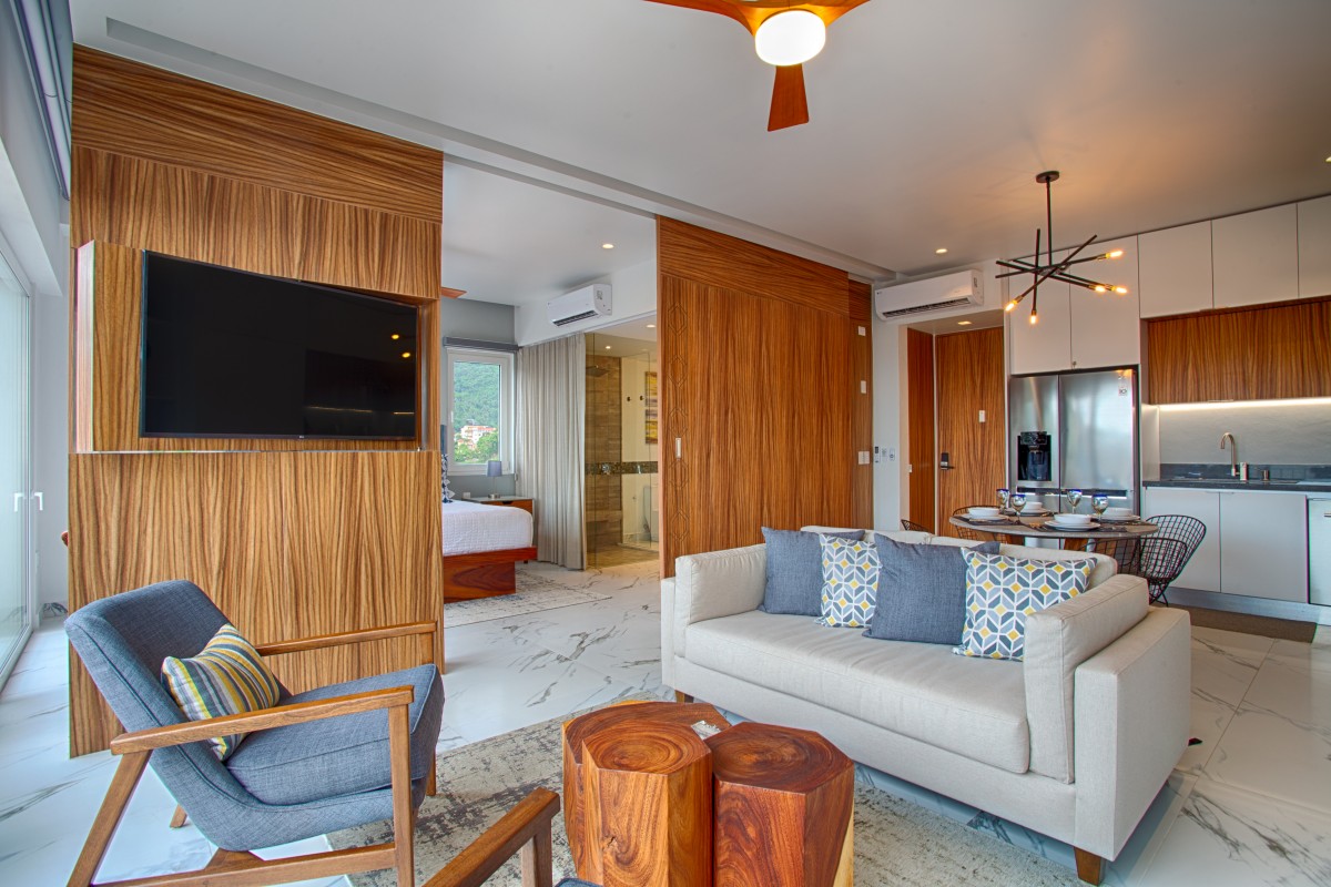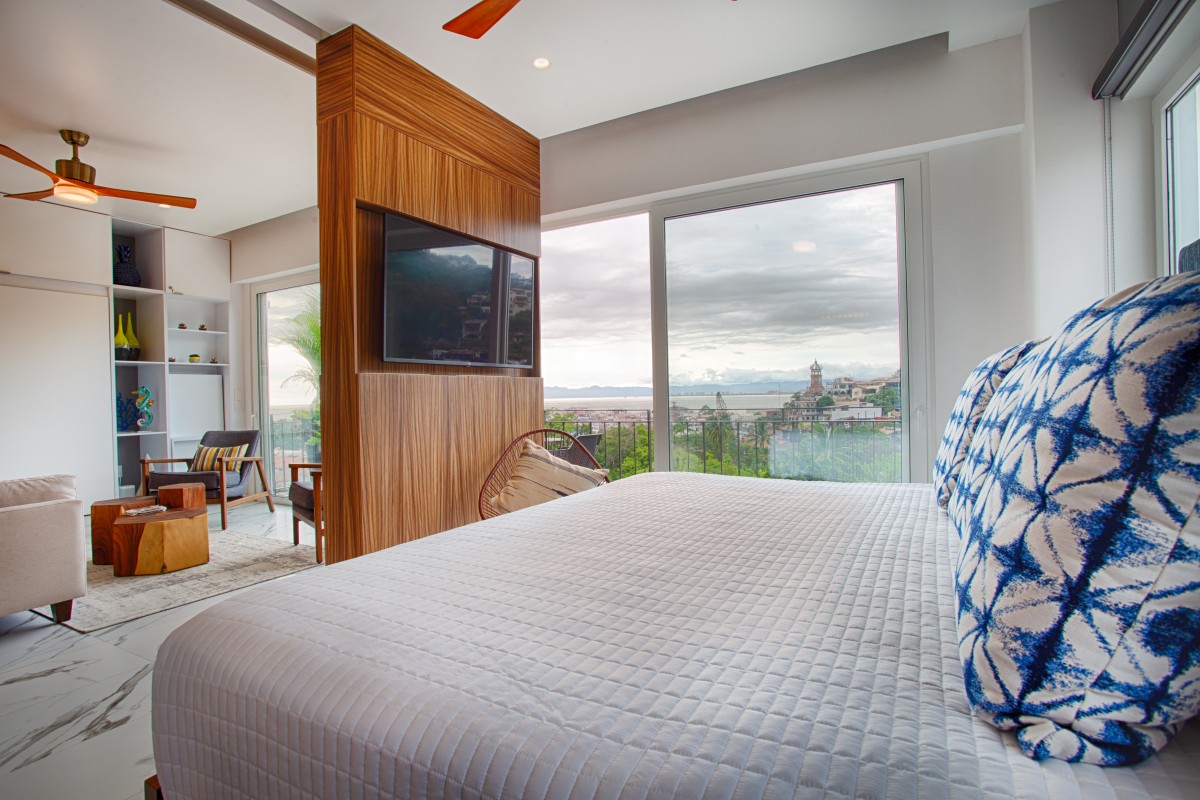 • Balcony with stunning views of Banderas Bay – enjoy incredible sunsets and nightly fireworks