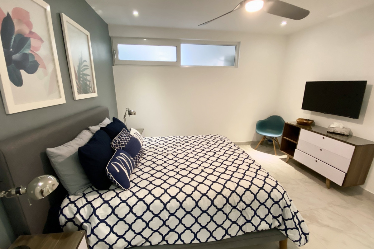 -Guest bedroom with Queen-size bed, air conditioning, wardrobe, and a full guest bathroom 🛁