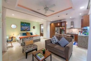 V177 - 105: Wide & Stylish Studio with Rooftop Oasis 🌴☀️Palmera Vacations presents V177 - 105, a bright and spacious ground-floor studio retreat in one of the most desirable areas of Puerto Vallarta’s Romantic Zone, just steps from Los Muertos Beach.