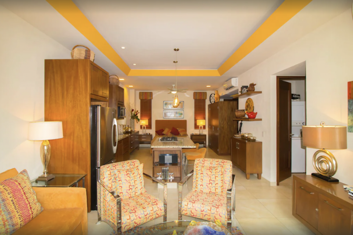 This 750 sq.ft. studio offers a sleek, modern aesthetic with all the amenities of a luxury hotel—without sacrificing the authenticity of local living. Perfectly suited for solo travelers or couples, the space features a comfortable king-size bed, fully equipped kitchen, smart TV, washer & dryer, and full bathroom with elegant finishes.